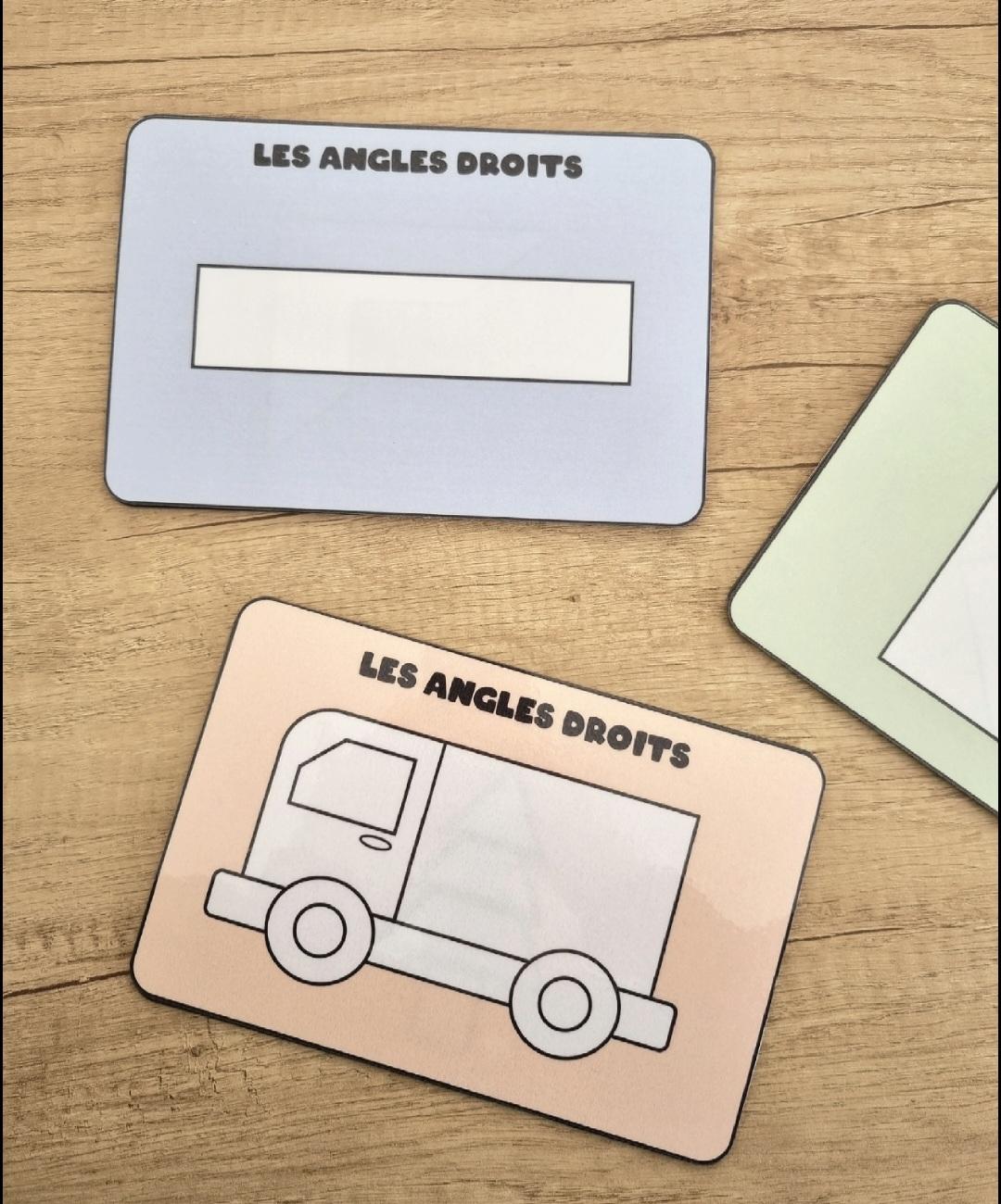 Du cycle 2 au cycle 3 , cet atelier permettra à vos élèves de travailler sur la notion d'angle droit. Il peut être mis en place en atelier autonome, en centre, en plan de travail, en atelier collectif etc selon votre propre organisation et attente. Il y a 3 niveaux : le bleu avec des formes simples et peu d'angles droits à trouver, le vert avec des formes géométriques plus complexes et un nombre d'angles droits croissants et enfin le dernier niveau avec de dessins et beaucopr d'angles droits à chercher et trouver. Ensuite, il faut faire un porte-clé autocorrectif avec les réponses afin que les élèves puissent d'autocorriger.